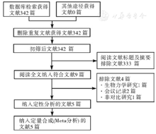 文献筛选由2名研究人员独立完成,如遇分歧讨论决定。筛选流程:阅读文章题目,若题目符合纳入标准,则阅读文章摘要;若摘要符合纳入标准,则进一步仔细阅读全文,符合纳入标准后纳入本次研究分析。按照Jadad质量评分法[13]评价文献质量,总分为7分:文献总分≥4分为高质量文献;3分为中等质量文献;<3分为低质量文献。