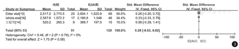纳入标准:(1)研究类型为随机对照或非随机对照研究,且随访时间不少于12个月;(2)研究对象为使用IS螺钉或S2AI螺钉行后路脊柱骨盆固定的成年患者(年龄≥18岁);(3)患者均行手术治疗,且分为S2AI组与IS组两种固定方式的独立对比研究;(4)观察指标为术中出血量、手术时间、术后VAS、住院时间、术后感染等并发症及内固定失败发生率。