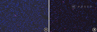 慢性间歇低氧组(图1B)在荧光镜下的TUNEL红色荧光标记的凋亡细胞数量显著多于对照组(图1A),凋亡指数增加显著(表2)。
