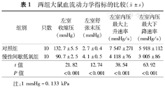 慢性间歇低氧组左室内压最大下降速率和左室内压最大上升速率、左室收缩压显著低于对照组,左室舒张末压显著高于对照组(均P<0.001)(表1)。