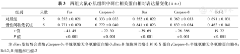 慢性间歇低氧组抑制凋亡蛋白Bcl–2相对表达量显著低于对照组,而Fas、Bax、caspase–3、caspase–8蛋白相对表达量均显著高于对照组(均P<0.01)(表3)。