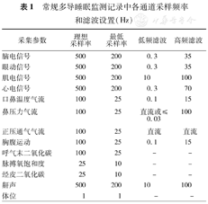 常规多导睡眠监测记录中各通道采样频率和滤波设置(Hz)
