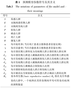 (1)式中0.1来自假设潜伏期人群单位时间内传染能力为发病期人群单位时间内传染能力的0.1倍[7]。