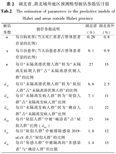 The estimation of parameters in the predictive models of Hubei and areas outside Hubei province