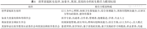 世界家庭医生组织、加拿大、英国、美国的全科医生胜任力模型比较