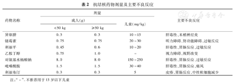 | 吡嗪酰胺 | 1.5 | 1.5 | 30~40 | 肝毒性、胃肠反应、痛风 |