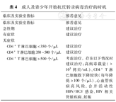 在开始HAART前,一定要取得患者的配合和同意,教育好患者服药的依从性;如患者存在严重的机会性感染和既往慢性疾病急性发作期,应控制病情稳定后开始治疗(表4)。