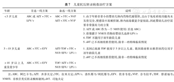 | 3~10岁儿童 | ABC+3TC+EFV | AZT/TDF+3TC+NVP/EFV/ LPV/r | 1.美国已批准TDF使用于3岁以上儿童,我国指南暂未推荐该药应用于该年龄段儿童2.d4T已不再继续推荐使用,除非一些特殊临床情况 |