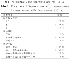 29例胎盘植入患者诊断措施及结果比较 [n(%)]