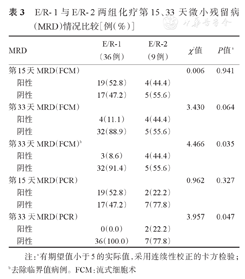 | MRD | E/R-1(36例) | E/R-2(9例) | χ2值 | P值a | |