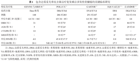在RRMM患者的治疗中,包含达雷妥尤单抗治疗方案的关键临床研究见表1[7,8,9,10,11]。