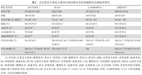 在NDMM患者的治疗中,包含达雷妥尤单抗治疗方案的关键临床研究见表2[14,15,16,17]。