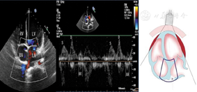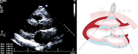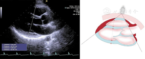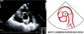 探头置于胸骨左缘第2、3肋间,在左心室长轴切面的基础上,将探头顺钟向旋转90°,使声束与左肩和右肋弓的连线平行。