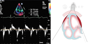 (5)组织多普勒超声心动图包含彩色组织多普勒成像和频谱组织多普勒成像两大类,是观测心室心肌力学状态的较为成熟的超声成像技术。频谱组织多普勒成像主要应用于采集二尖瓣环和三尖瓣环和心脏特定部位心肌在舒张期和收缩期的组织运动速度频谱。
