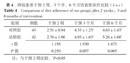 | 组别 | 例数 | 干预2周 | 干预3个月 | 干预6个月 |