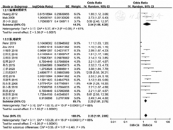 本研究的局限性:(1)个别危险因素纳入文献数量较少,可能会对Meta分析的结论存在一定影响;(2)纳入的回顾性研究较多,其研究设计、选择性偏倚可能对研究结果存在影响;(3)由于各研究对研究对象的年龄、体质指数的划分范围未进行统一,无法进行亚组分析;(4)个别危险因素的纳入研究存在一定的发表偏倚,可能会对研究结论的可信性造成影响。