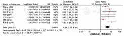 7篇文献[9,17,23,25,26,31,39]报道了高血压对BCRL的影响。异质性检验结果显示,I2=73%,P=0.001,采用随机效应模型进行Meta分析,结果显示,高血压是BCRL的影响因素〔OR=4.76,95%CI(2.53,8.94),P<0.000 01〕,见图4。经敏感性分析发现,胡艳等[9]的研究是异质性主要来源,这可能与该研究中大部分研究对象接受了化疗,增加了乳腺癌患者BCRL的发生率有关。排除此研究后,各研究间无统计学异质性(I2=31%,P=0.20),采用固定效应模型进行Meta分析,其结果与剔除前一致〔OR=6.07,95%CI(4.31,8.57),P<0.000 01〕。