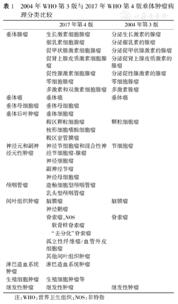 2004年WHO第3版与2017年WHO第4版垂体肿瘤病理分类比较