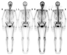 PTH依赖性高钙血症的病因包括:原发性甲状旁腺功能亢进症、三发性甲状旁腺功能亢进症、异位肿瘤分泌PTH。患者无慢性肾功能不全和继发性甲状旁腺功能亢进症病史,而异位肿瘤分泌PTH罕见,因此首先考虑原发性甲状旁腺功能亢进症。原发性甲状旁腺功能亢进症为甲状旁腺腺瘤、增生或腺癌导致甲状旁腺自主分泌PTH,进而使血钙升高引起临床症状。该例患者头颅侧位及双手正位片提示骨质疏松,99Tcm-亚甲基二膦酸盐(methylene diphosponate, MDP)全身骨显像(德国Siemens E.CAM SPECT/CT;图1)见全身骨骼摄取普遍轻度增高,软组织本底摄取降低,符合代谢性骨病的超级骨显像表现。
