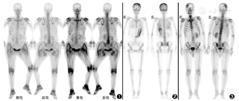 本例患者多发性骨髓瘤诊断明确,是否合并关节周围及皮下软组织淀粉样变、骨髓瘤累及范围还有待进一步评估。全身骨显像除显示骨骼病变外,异常的关节病变及骨外摄取对鉴别诊断及疾病的评估也具有重要意义。