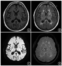 患者女,73岁,受教育程度:6年(小学文化)。因"出现幻视半年余伴认知障碍(主诉看到已过世或不存在的人及经常不能认出丈夫)、进行性记忆下降3年余"就诊。体格检查:血压130/80 mmHg(1 mmHg=0.133 kPa),双侧瞳孔等大正圆,反应迟钝,双侧鼻唇沟等深,四肢肌张力增高,双上肢和双下肢腱反射未引出,无颈项强直,Kernig征阴性。神经精神心理学评估:计算力明显下降,不能配合完成神经精神量表检查。既往史:高血压10余年,控制可,无糖尿病、症状性脑卒中等病史。实验室检查:甲状腺功能正常,叶酸、血清维生素B12正常,梅毒筛查甲苯胺红不加热血清试验(toluidine red unheated serum test, TRUST)阴性。头颅MRI示:T1加权成像(weighted imaging, WI)未见明显异常(图1A);T2WI示多发非对称性白质高信号病灶并延伸至皮质下白质(图1B);弥散WI(diffusion WI, DWI)未见明显异常(图1C);磁敏感WI(susceptibility WI, SWI)示颅内散在皮质、皮质下多发微出血病灶(图1D)。18F-脱氧葡萄糖(fluorodeoxyglucose, FDG)及淀粉样蛋白显像剂18F-florbetapir[AV-45;AV-45显像得到本院伦理委员会的批准(批准号:2018-191),患者签署知情同意书]由本院核医学科自制,PET/CT(德国Siemens Biography mCT)显像结果如下:CT示右侧脑室旁腔隙性脑梗死灶(图2A);双侧顶叶、双侧枕叶和右侧额叶弥漫性FDG代谢轻度减低(图2B);双侧额叶、颞叶、顶叶和枕叶皮质见淀粉样蛋白沉积(图2C)。根据脑淀粉样血管病(cerebral amyloid angiopathy, CAA)波士顿诊断标准[1,2],最终临床诊断为CAA。