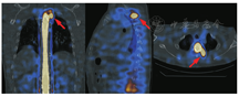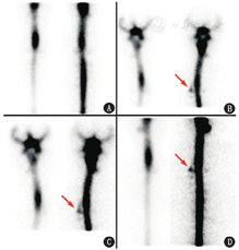 此种不明原因的隐匿性脑脊液漏,临床报道相对较少,部分学者研究发现可能是由于剧烈咳嗽或转颈时颈椎骨质增生形成的骨刺刺破硬膜囊所致[6,7,8] ,若早期部分采集时间段椎管旁没有异常放射性浓聚影,应嘱咐患者轻微活动后或体位变换后多时相采集,这样既可提高阳性检出率,避免漏诊,同时也能增强诊断信心。