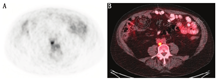 定义显像剂摄取阳性的常规标准是摄取程度明显高于骨髓(常选L3椎体作为参照)、直径大于1 cm。对于软组织病变或直径小于1 cm的淋巴结,如果显像剂摄取在视觉上等于或者接近骨髓并且明显高于血池(可选腹主动脉作为参照),因为部分容积效应的原因,仍可视为阳性。