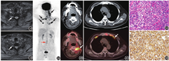 认识罕见的无淋巴结或脏器侵犯的原发性周围NL的18F-FDG PET/CT典型表现有助于改善患者预后。当MRI表现为神经根或周围神经增粗伴明显强化而FDG摄取明显增高时,应考虑到NL的可能。当患者有周围神经系统病变的神经表现而又有淋巴瘤病史时,也应考虑NL的可能。