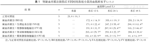 | 缺血再灌注+肾动脉细胞输注(RA)组 | 5 | — | 203.4±29.7ab | 293.8±22.3ab | 208.8±39.6a |