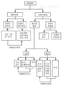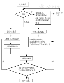 根据皮肤外伤后瘢痕的不同类型及分期,结合当前瘢痕治疗的研究进展以及临床经验,制订瘢痕的综合治疗方案(图1)。对于需要进行光电治疗的患者,再按皮肤瘢痕光电治疗流程图(图2)对瘢痕进行分类并选择对应的治疗措施。光电治疗中一些具体事项如下。