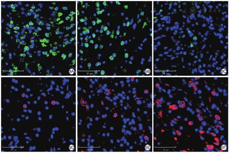 注:诱导型一氧化氮合酶(iNOS)阳性染色为绿色,CD206阳性染色为红色,细胞核阳性染色为蓝色
