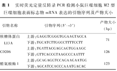 实时荧光定量反转录PCR检测小鼠巨噬细胞M2型巨噬细胞表面标志物mRNA表达的引物序列及产物大小
