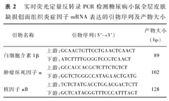 实时荧光定量反转录PCR检测糖尿病小鼠全层皮肤缺损创面组织炎症因子mRNA表达的引物序列及产物大小