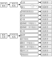 《日本共识》建议瘢痕及瘢痕疙瘩的初始治疗和保守治疗由一般医疗机构负责,在一般医疗机构中按照儿童和成人瘢痕给予不同的治疗方案建议;建议一般医疗机构治疗无效的瘢痕及瘢痕疙瘩患者到专科医疗机构继续治疗,在专科医疗机构内针对不同解剖部位的病变给予治疗方案建议(图1)。专科医疗机构可以开展一般医疗机构无法开展的外科手术、放射疗法、激光疗法、化妆疗法和社会心理保健[4]。