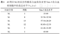 | FAB分型 | 例数 | Tim-3表达水平 |