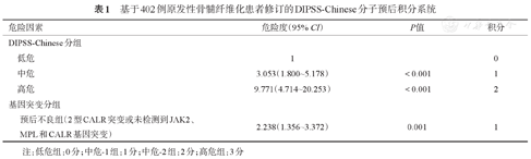 在中国PMF患者中,2型CALR突变和未检测到JAK2、MPL和CALR突变是独立的不良预后因素,DIPSS-Chinese分子预后积分系统有更好的预测价值。