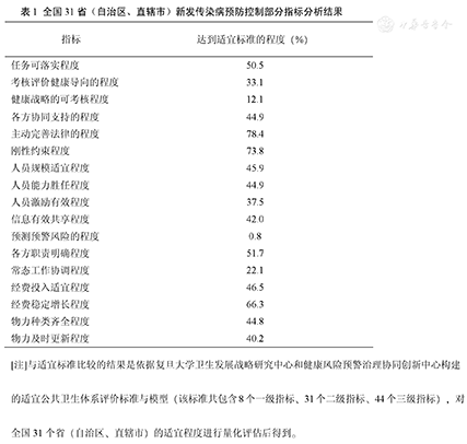 全国31省(自治区、直辖市)新发传染病预防控制部分指标分析结果