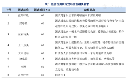 | 2 | 深呼吸 | 60 | 测试对象以较深的程度和较慢的频率进行吸气和呼气(注意避免呼吸用力过度,以免造成口罩外形塌陷) |