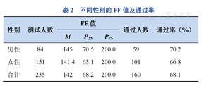 不同性别的FF值及通过率