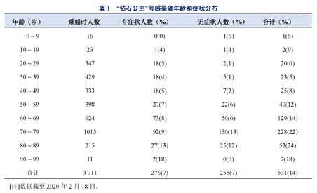 "钻石公主"号感染者年龄和症状分布