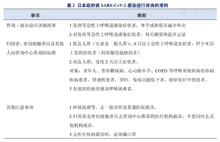 日本政府就SARS-CoV-2感染进行咨询的准则