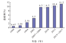 2013—2014年第四次中国慢性病与危险因素监测(CCDRFS)项目与2015年中国成人营养与慢性病监测(CANCDS)项目显示,中国居民血脂异常主要类型是低高密度脂蛋白胆固醇(HDL-C)血症和高三酰甘油(TG)血症,然而2013—2015年高总胆固醇(TC)血症和高低密度脂蛋白胆固醇(LDL-C)血症患病率增加迅速,较2010年升高2~4倍。