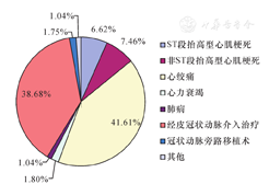 心血管病高危人群早期筛查与综合干预项目(China PEACE)对中国大陆31个省、自治区、直辖市随机抽样确定了162家二、三级医院,入选13 815份研究病历,发现在2001—2011年因AMI住院的患者中,ST段抬高型心肌梗死(STEMI)占86.8%,因STEMI住院患者的人数增加了3倍。