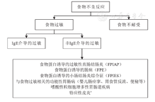 特别需要注意的是,食物蛋白诱导的各种肠道病变的判断,其中食物蛋白诱导的小肠结肠炎综合征(food protein-induced enterocolitis syndrome,FPIES)少见、严重[13,14];食物蛋白诱导的过敏性直肠结肠炎(food protein-induced allergic proctocolitis,FPIAP)多为母乳喂养,且以血便为主[12,13];食物蛋白诱导的肠病(food protein-induced enteropathy,FPE)较少见,以反复腹泻、小肠吸收功能降低为主,严重时可伴有生长发育迟缓[15]。
