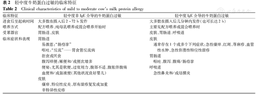 Clinical characteristics of mild to moderate cow′s milk protein allergy