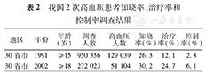 我国2次高血压患者知晓率、治疗率和控制率调查结果