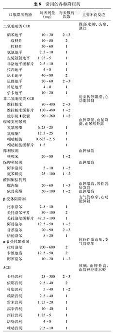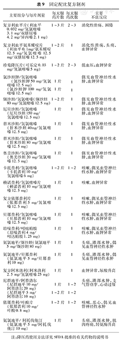 CCB、ACEI、ARB、噻嗪类利尿剂、β受体阻滞剂以及由这些药物所组成的固定复方制剂均可作为高血压初始或维持治疗的药物选择。联合治疗有利于血压达标