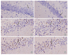 IL-1β在海马CA1区的表达特点与TUNEL标记的海马细胞凋亡程度相一致,呈正相关关系(r=0.789,P<0.01)。