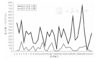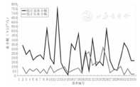 本组患儿化疗前血小板与化疗后血小板的最低值比较差异有统计学意义(t=8.602,P=0.000),即化疗后血小板明显低于化疗前。化疗后血小板发生Ⅰ度毒性10例次(15.2%),Ⅱ度毒性15例次(22.7%),Ⅲ度毒性9例次(13.6%),Ⅳ度毒性者(血小板<25×109/L)共有19例次(28.8%),但无一例患儿发生出血事件。CAV1和CAV2 2个疗程的超大剂量CTX为主的方案化疗时,血小板在化疗前及化疗后的数值分布曲线图见图3、图4。