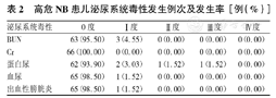| 泌尿系统毒性 | 0度 | Ⅰ度 | Ⅱ度 | Ⅲ度 | Ⅳ度 |